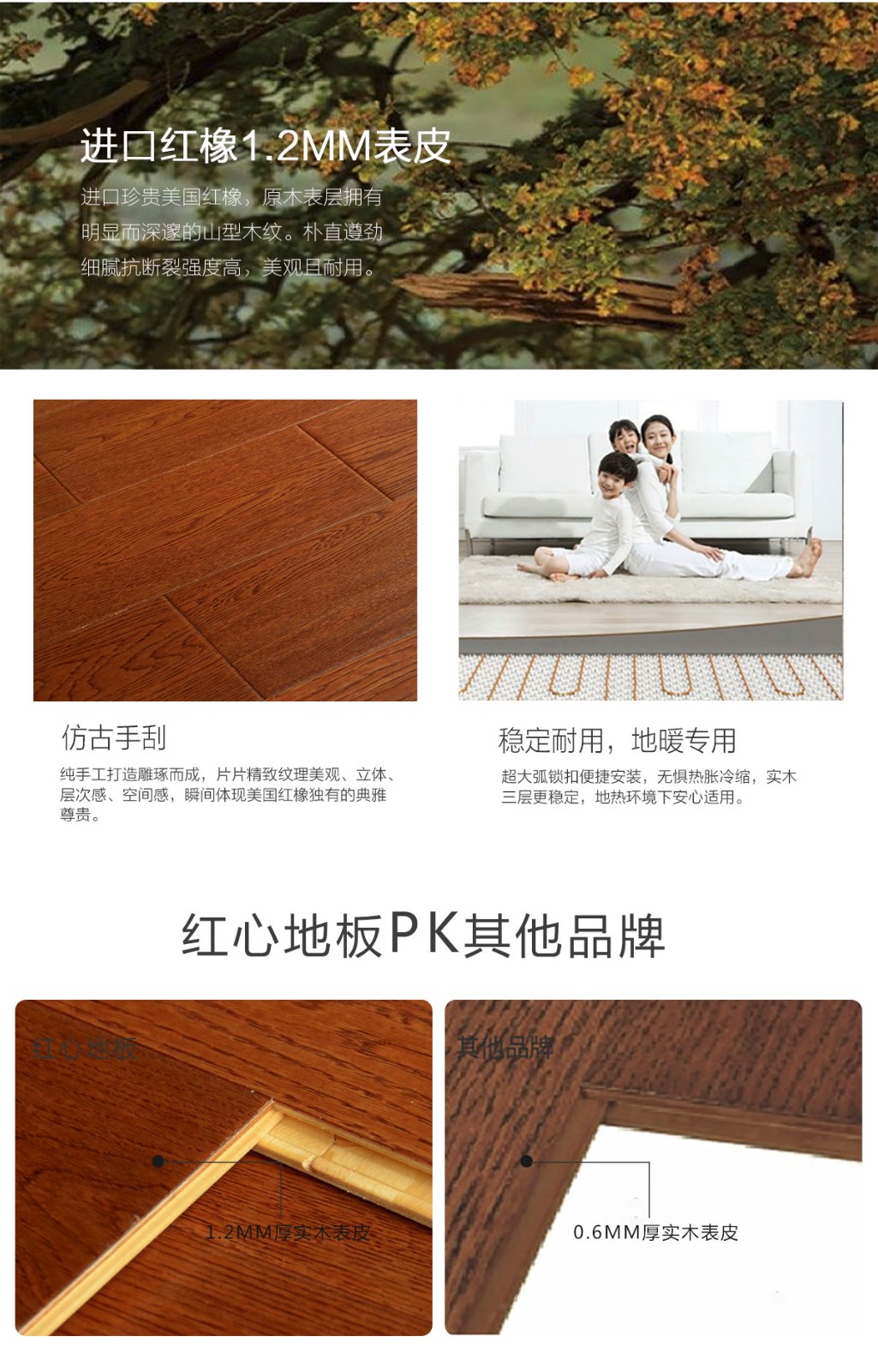 地板基材:表皮材質(zhì):紅橡